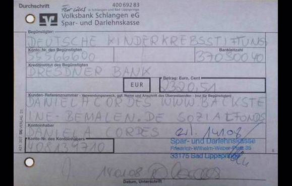 14.01.2008 Danielas A(u)ktion brachte EUR 2.320,51 für die Kinderkrebsstiftung