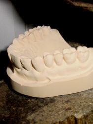 Als da wären: Kaminholz, Messingfäden, eine alte Schweißnaht, eine Eisenstange und ...tatsächlich, Johannes hatte den Gipsabdruck von einem Gebiß im Auto. :-) Na, damit sollte sich doch etwas anfangen lassen.