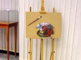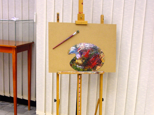 Antal (Antonio) hatte Geburtstag und wünschte sich Katalins signierte Palette. Ich wollte davon ein Foto machen und habe zur Deko noch einen Pinsel befestigt. Nun muss Antonio auf seine Palette noch ein bisschen warten... Das Kulturhaus fand die Idee gut. Die Palette steht jetzt während der Ausstellungszeit zur Dekoration neben dem Eingang. :-)