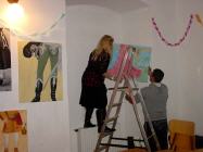 Das ist Anikó (r.) aus Tiszaujváros. Sie ist die Künstlerin des Bildes "Hippie-Bein" (rechts oben).