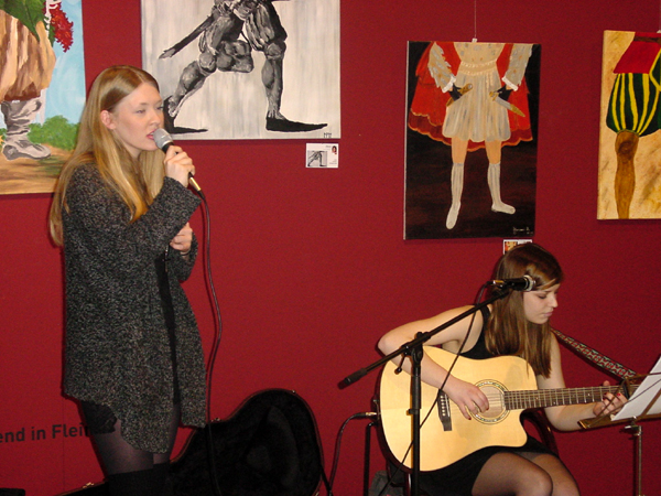 Gleich ist es so weit... Samira Wahl und Elisabeth Schmidt greifen zu Gitarre und Mikofon.