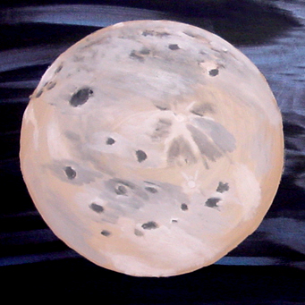 In den vergangenen 20 bis 25 Jahren haben die Astronomen dank besserer Teleskope und den Einsatz von Sateliten viele neue Monde in unserem Sonnensystem entdeckt. Inzwischen gibt es schon fast 200 bekannte Himmelskörper, die in einer festen Bahn um ihre Mutterplaneten laufen. Viele davon sind wirkliche Kleinmonde mit weniger als 10 km Durchmesser. Diese Winzlinge wollen wir bei unserem Projekt vernachlässigen. Erstens ist von vielen dieser Kleinstmonde noch sehr wenig bekannt, zweitens hätten wir aus Platzgründen kaum eine Chance auf eine Ausstellung, wenn wir von jedem „Krümel“ im Weltraum ein Gemälde anfertigen würden. Auch ohne diese Winzlinge wird „Colorful Solar System“ ein sehr umfangreiches Unterfangen.