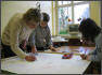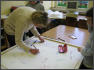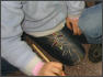 Gestern Abend hatte ich noch die Idee, heute eine Autogrammstunde mit den Kindern zu veranstalten, damit die Person, die sich das Bild an die Wand hängt, auch weiß, wer es mit kreiert hat. Die Schüler nahmen diese Unterschrift sehr ernst und ließen sich auch auf der Rückseite der Leinwand kreativ inspirieren.