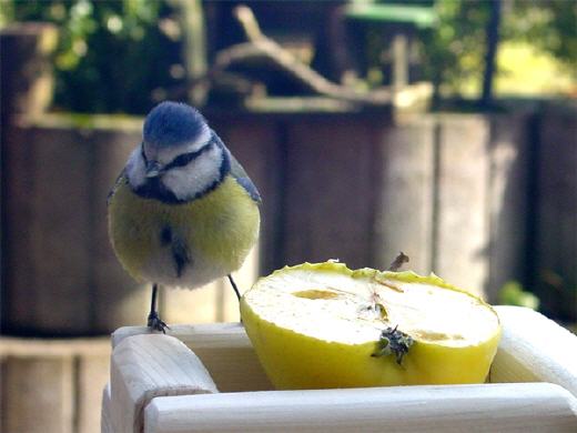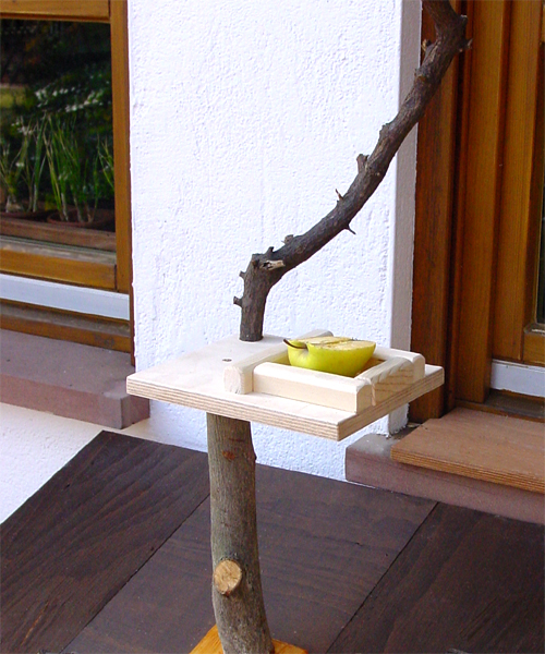 Der kleine Amseltisch steht jetzt vor meinem Fenster und der erste Gast war auch schon da. :-)