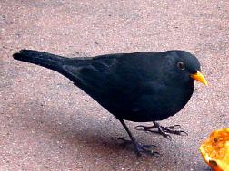 Bei mir im Garten wohnt ein Amselpaar. Die beiden unterscheiden sich wie Tag und Nacht. Während das Männchen ein tief schwarzes Federkleid und einen leuchtenden Schnabel hat, ist das Weibchen vom Schnabel bis zur letzten Schwanzfeder schmuddelig grau. Das Amselmännchen bekommt von mir jeden Tag einen halben Apfel. Das Weibchen zieht lieber die Körner vor.