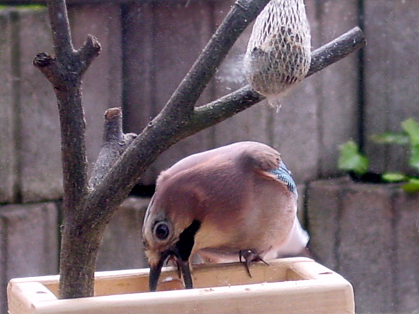 Ich habe noch nie einen Vogel erlebt, der so vorsichtig ist wie der Eichelhäher. Extra für ihn habe ich auf der Fensterbank eine eigene Futterstelle aufgestellt … gefüllt mit leckeren Eicheln. Der Vogel sitzt unbeirrt auf dem Baum und fixiert mich durch die Fensterscheibe. Verlasse ich den Raum für einen kurzen Moment, sind nach meiner Rückkehr alle Eicheln verschwunden. Das Foto ist mir nur gelungen, weil ich ihn regelrecht überlistet habe.