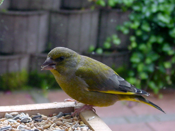 Der Grünfink (auch Grünling genannt) ist stark in meinem Garten vertreten, besucht aber lieber die dort stehenden Futterhäuschen. Auf die Fensterbank wagt er sich nur selten.