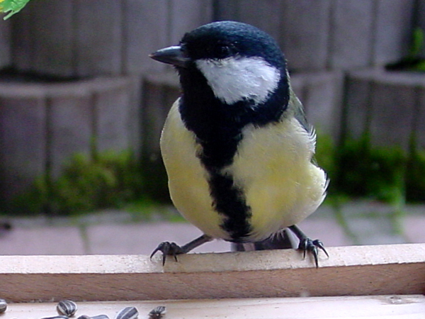 Die Kohlmeise ist ein recht zutraulicher Zeitgenosse. Wenn er an der Futterstelle ist, dann kann ihn nichts erschüttern. Ich kann hinter der Fensterscheibe rumhantieren soviel ich will. Er ist unbeirrt am Futtern. Kaum hat er ein Korn aufgenommen, dreht er mir sein Hinterteil zu, klemmt das Korn zwischen seine Zehen und hämmert mit gezielten Schnabelschlägen die Schale ab.