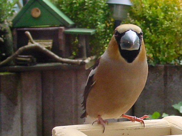 Mit seiner Körpergröße von bis zu 18 cm gehört der Kernbeißer zum König unter den Finken. Abgesehen vom Menschen hat er bei uns keine natürlichen Feinde, aber auch keine wirklichen Freunde. Er ist der Platzhirsch an der Futterstelle. Kleine Singvögel meiden ihn wegen seiner Rauflust.