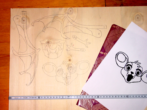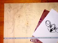 Nachdem du die beiden Vorlagen ausgedruckt hast, kopierst du die Teile mit Kohlepapier auf deine Holzplatte.