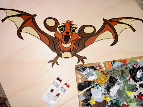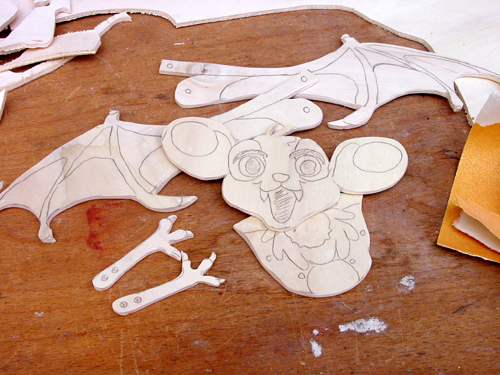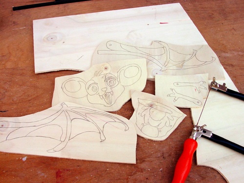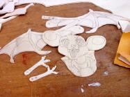 Nun sind die einzelnen Teile handlich, und du kannst jetzt mit einem feinen Sägeblatt Pipistrellos Körperteile genau aussägen. Danach schleifst du mit feinem Schmirgelpapier die Kanten schön glatt.