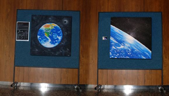 Hier sind die beiden Bilder des Künstlers Okapi noch bis zum 20. August zu besichtigen, bevor sie gemäß ihrer Umlaufbahn weiter ziehen.