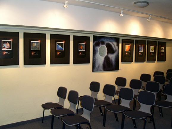 Das Sedna-Gemälde von Sylvia Rojahn "wohnt" bis Ende des Jahres in Radebeul. Es hängt neben den anderen "Poster"-Planeten im Hörsaal der Sternwarte.