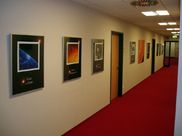 "Wir haben Jupiter und die Poster der anderen Planeten zusammen mit Photos von einem Projekt einer Schule, bei dem ein alter Gasometer die Sonne darstellt und die Planeten als Stahlplastiken im entsprechenden Maßstab (größenmäßig) aufgestellt sind, in einem Flur aufgehängt. Das schafft auch einen lokalen Bezug."