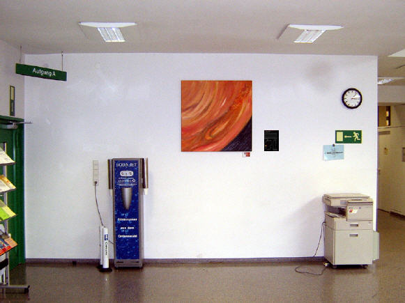 Im Moment ist Jupiter zu Gast in Neustadt an der Weinstrasse. Hier ist er noch bis zum 15.06.2008 im Rathaus zu besichtigen, bevor er mit unseren anderen Himmelskörpen zusammen am 1. Wochenende im August ein kurzes Gastspiel in Blomberg im Kunsttower gibt. Bei dem Blomberger Kunsttower handelt es sich um einen alten historischen Kirchturm. Alle Interessenten sind zu dieser Veranstaltung herzlich eingeladen.