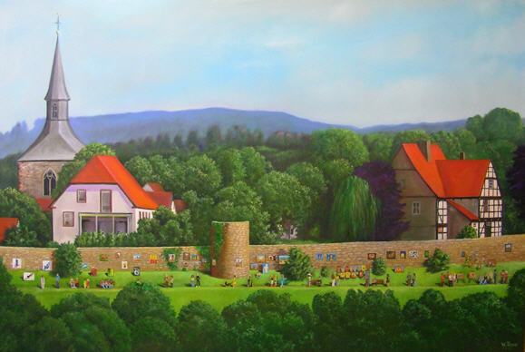 Am Sonntag gab es neben den KunstTower ein weiteres, von Wolfgang organisiertes, kulturelles Highlight. Die 7. Blomberger KunstMauer. Hier stellten auch zwei von den Planetariern (Wolfgangs Worte) aus. Pipistrello und Okapi zeigten einige ihrer Arbeiten. Die gesamte KunstMauer erstreckte sich über mehrere 100 Meter.