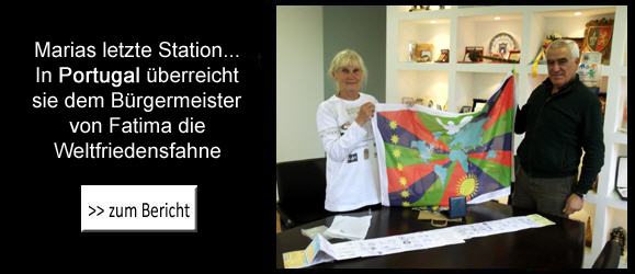 Maria fährt nicht mit Bahn, Bus oder Auto. Sie legt die 4.000 km zu Fuß zurück! Und jedem dieser Länder überreicht sie die Weltfriedensfahne. Gestartet ist sie am 19. Juni 2012 gegen 13:00 Uhr in Budapest nur mit einem kleinen Rucksack als Gepäck... und ohne Convoy, der ihr der ihr Verpflegung und sonstiges Material hinterher bringt.Sie ist allein unterwegs und für Übernachtungen und Verpflegung auf nette Menschen und Sponsoren angewiesen. ( Wenn du Maria finanziell unterstützen möchtest, kannst du gerne ihre Bankverbindung bei uns anfordern peter@petervonk.de )