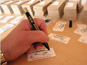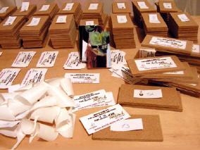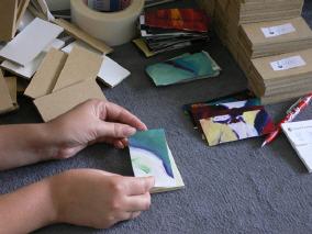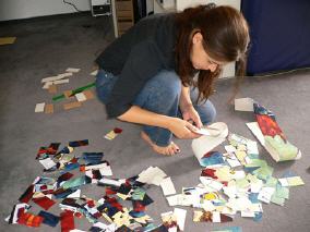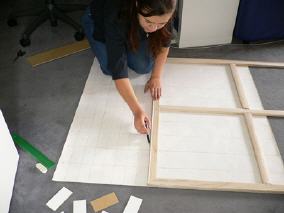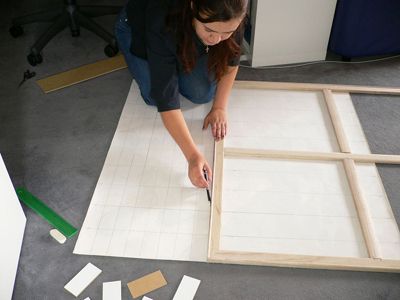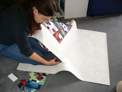 Jedes Bildteil wird auf die kleinen Trägerplättchen aufgezogen,