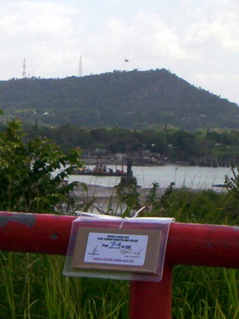 Die Familie Santiago - Quintero aus Rödermark / Deutschland, hat die kleine Friedensbotschaft im Januar 2006 in ihrer Heimatstadt an einem Aussichtspunkt nahe des Panamakanals deponiert.