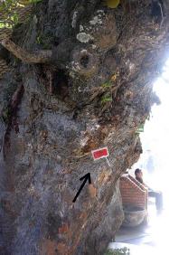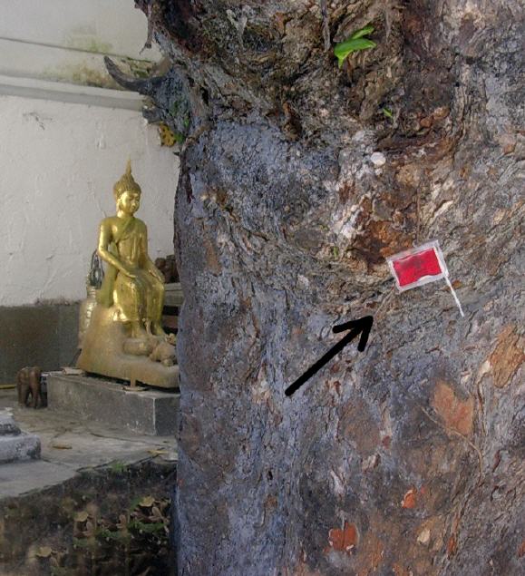 An einem Jackfrucht-Baum, welcher sich auf der Tempelanlage befindet, hängt nun das Bildteil Nr.66.