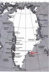 Grönland! Die größte Insel der Welt erstreckt sich über 3000 Kilometer von Norden nach Süden und über 1500 Kilometer von Osten nach Westen. Der größte Teil davon ist tatsächlich mit Eis und Schnee bedeckt, lediglich die Küstenregionen, besonders im Süden und Westen, sind wenige Wochen im Sommer grün. Diese Tatsache nutzte der Wikinger Erik der Rote werbewirksam, als er die Insel Grünland taufte, um von Island her Siedler anzulocken.