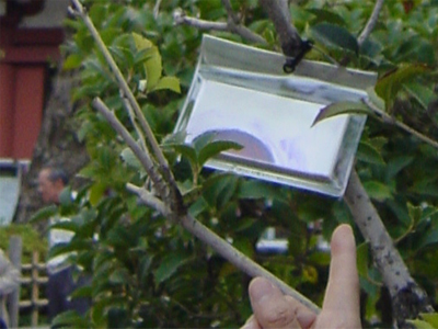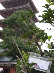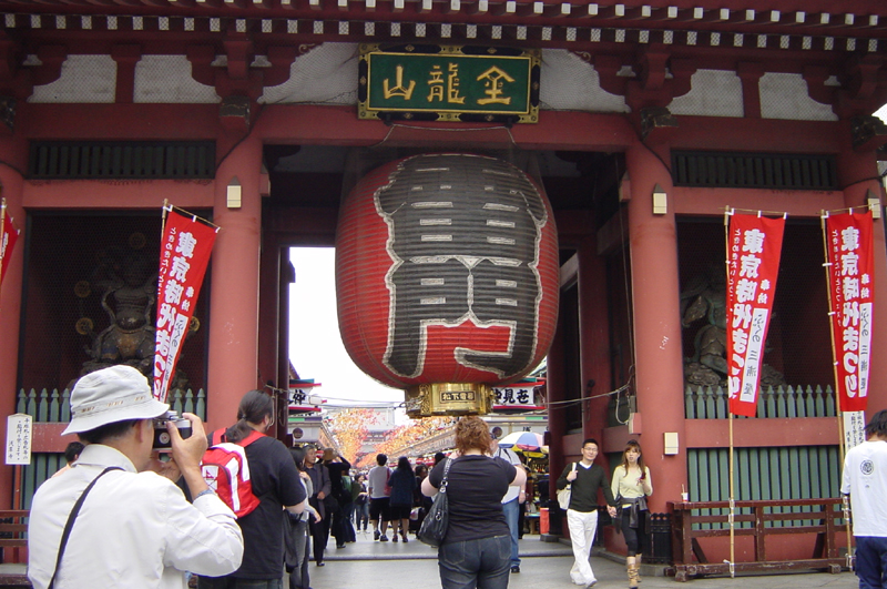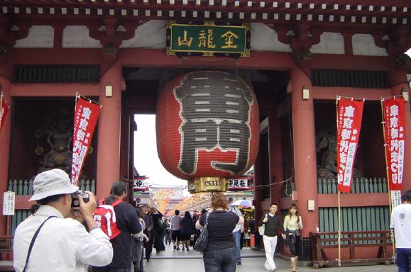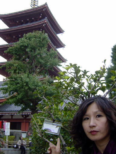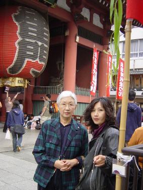 Das Bildteilchen Nr. 49 hat mich auf dieser besonderen Reise begleitet. Da ich meiner Tochter auch den touristischen "Kern" von Tokio, der in jedem Reiseführer erwähnt wird, zeigen wollte, sind wir nach Asakusa zum alten, buddhistischen Tempel "Sensô-ji" mit der berühmten Riesenlaterne gefahren. Zuerst habe ich versucht, das Bildchen in der Nähe der Laterne anzubinden (Foto: oben und rechts, ich mit meiner Mutter), aber ich dachte, es sei kein guter Platz auf die Dauer.