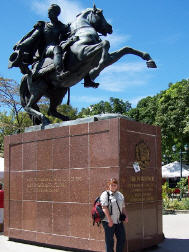 In der Mitte des Platzes erhebt sich ein Reiterdenkmal von Simon Bolivar. Simon Bolivar war südamerikanischer Unabhängigkeitskämpfer und ist Nationalheld vieler südamerikanischer Länder. Venezuela nennt sich offiziell Bolivarische Republik Venezuela, auch heißt die Währung des Landes Bolivar.