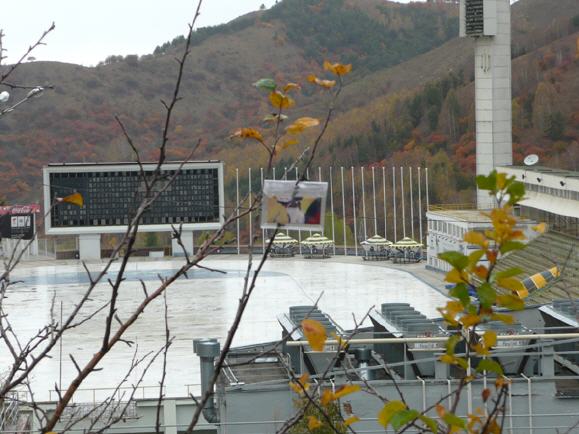 Mit dem Wunsch auf einen friedlichen Verlauf weiterer internationaler Wettkämpfe befestigte ich das Friedensteil 124 in Sichtweite des Stadions am 13. Oktober 2008 um 12.25 Uhr.