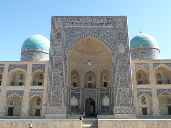 Prunkvolles Portal (Iwan) und Kuppeln der Koranschule Mir-e Arab in Buchara