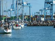Hunderte Zuschauer begleiten die Yachten mit vielen guten Wünschen
