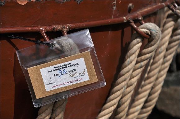Was auch immer die wahre Geschichte dieses Hauses gewesen sein mag - wenige Meter daneben wurde 2002 das Monument zur Befreiung der Sklaven errichtet. Diese Skulptur wählte ich, nach Absprache mit den Wärtern des Sklavenhauses und des Mahnmals, als Platz für das Friedens-Puzzle-Teil.